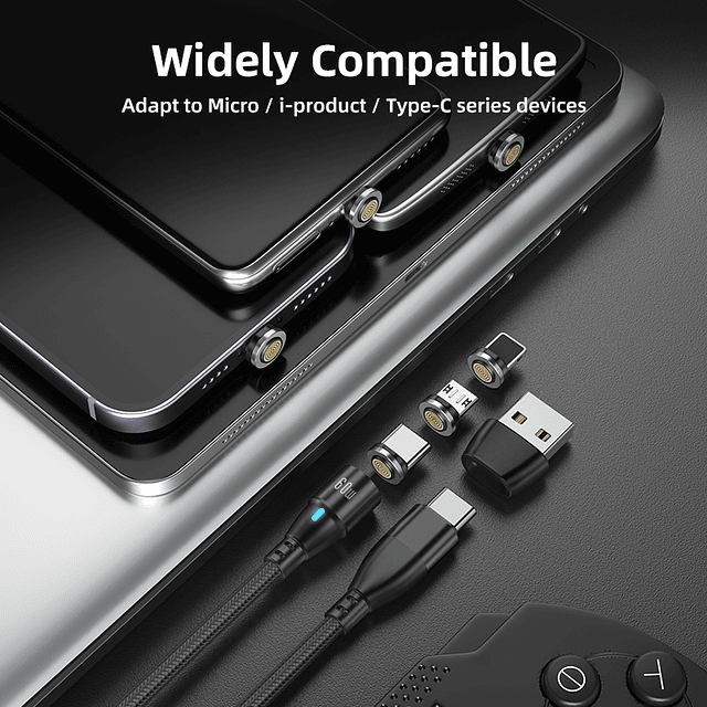 · Diseño exterior innovador: Gracias a su diseño redondo, el cable se conecta automáticamente a 540°, evitando enredos y asegurando una carga rápida y estable.